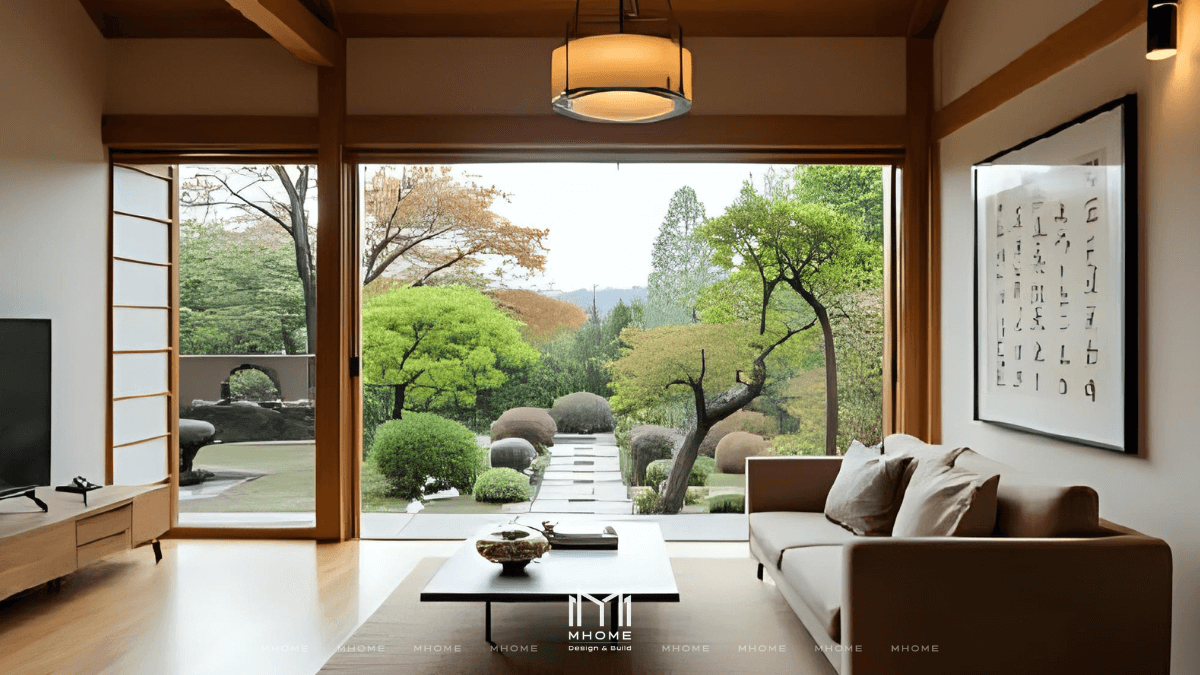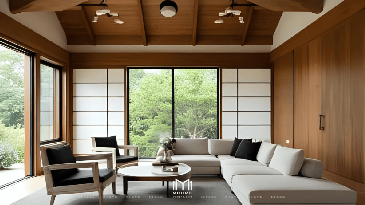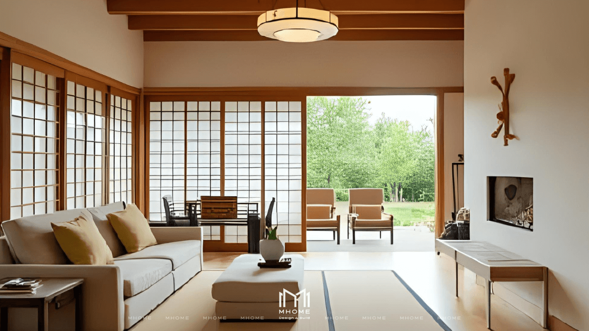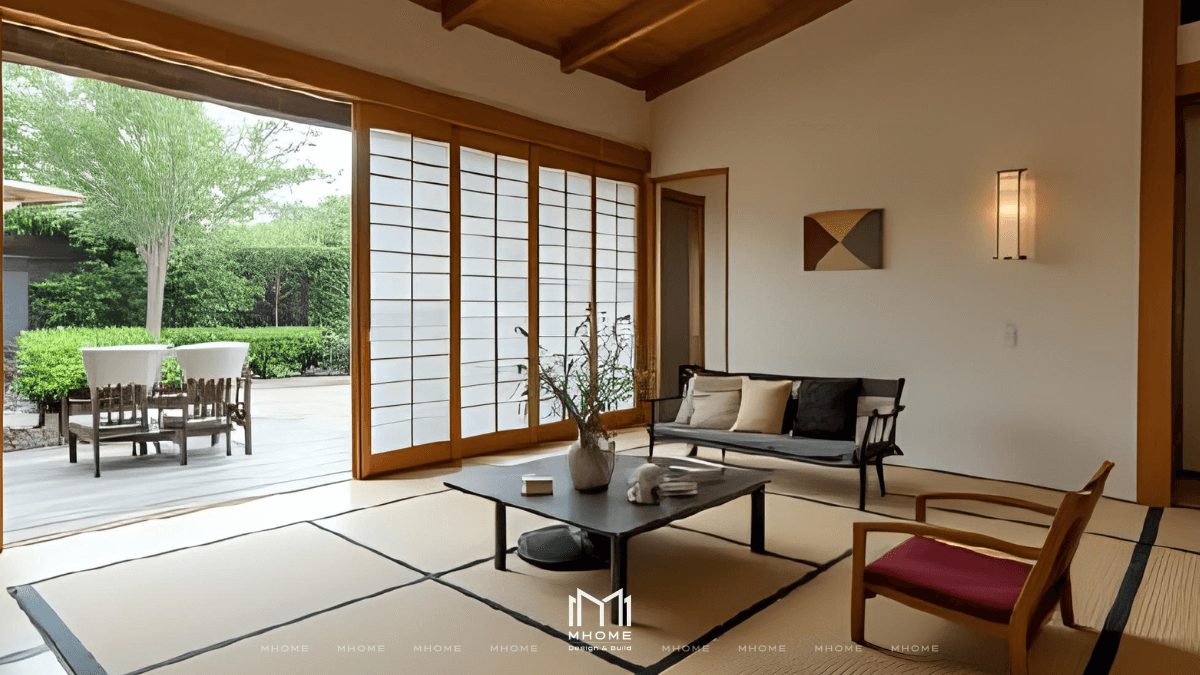- Ánh sáng tự nhiên: Sử dụng cửa kính lớn hoặc cửa trượt Shoji để đón sáng.