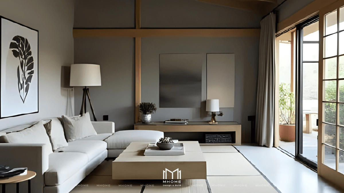 Mẫu 4 – Phòng khách Nhật tối giản với bàn trà thấp