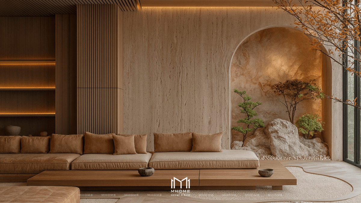 - Tạo cảm giác thư giãn tuyệt đối: Gam màu nhẹ nhàng, ánh sáng tự nhiên và vật liệu gỗ, tre, đá giúp phòng khách mang lại sự bình yên, xua tan căng thẳng sau một ngày dài.