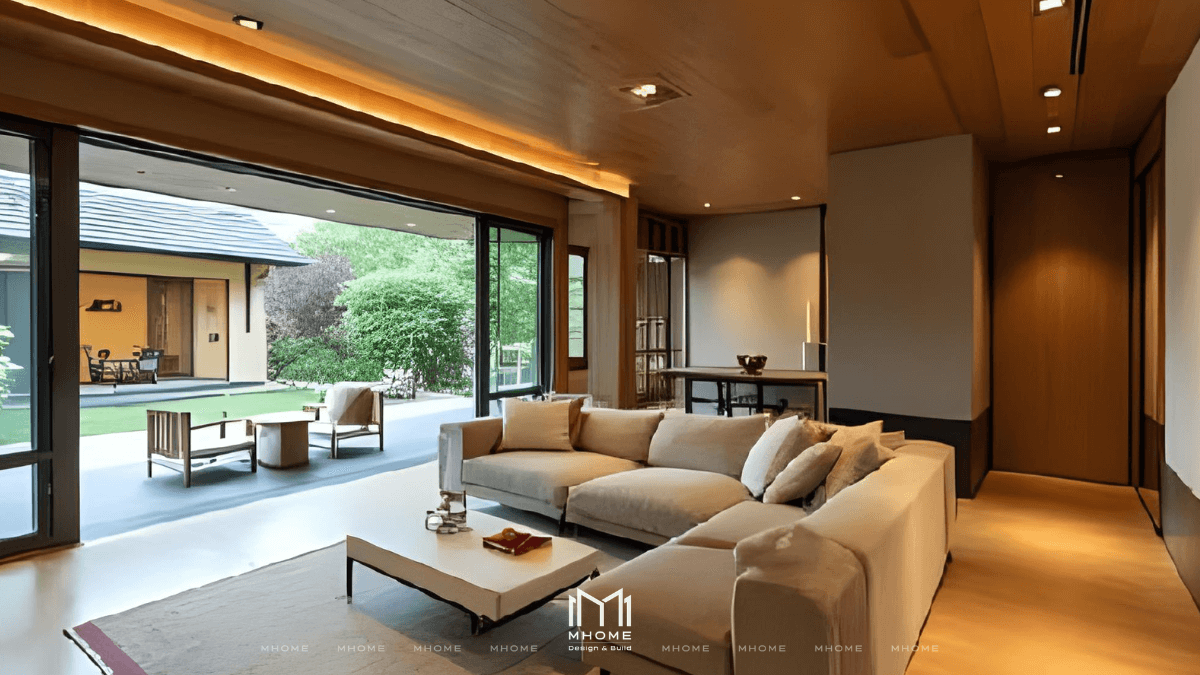 - Không gian mở: Kết nối hài hòa giữa phòng khách và sân vườn.