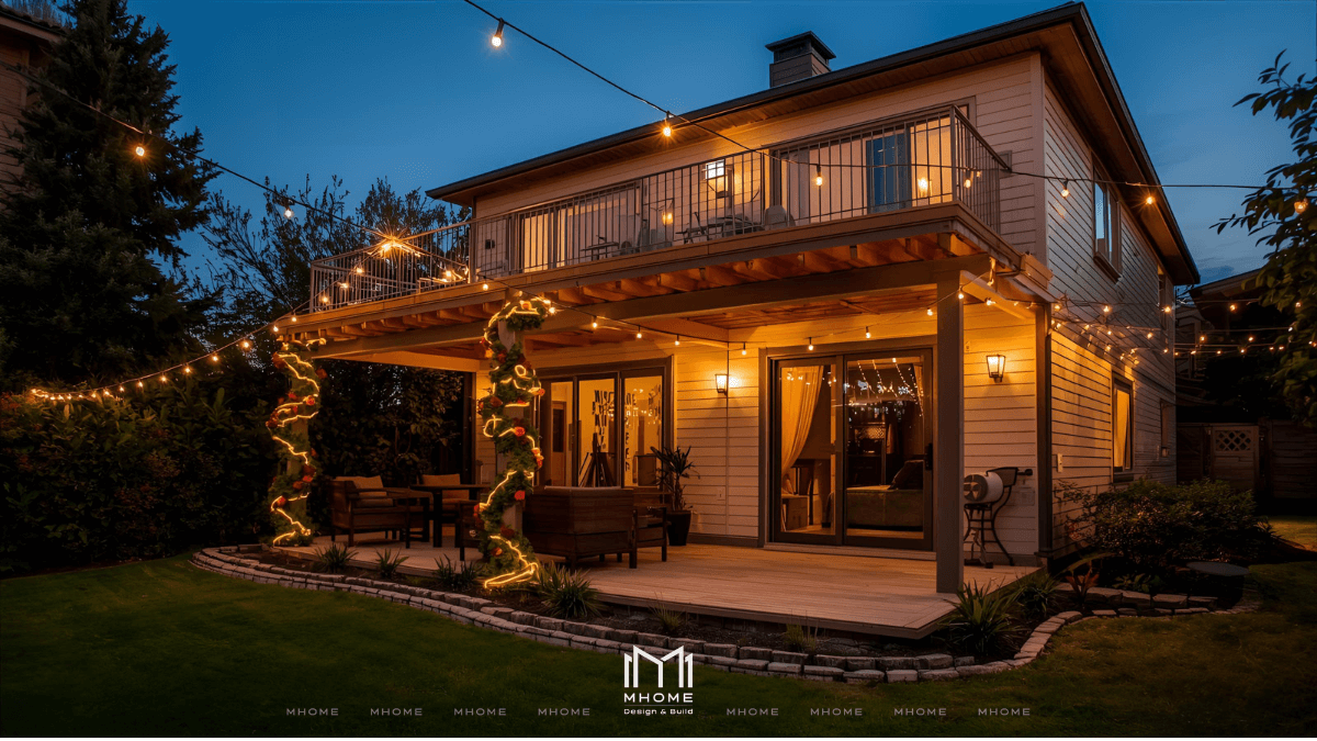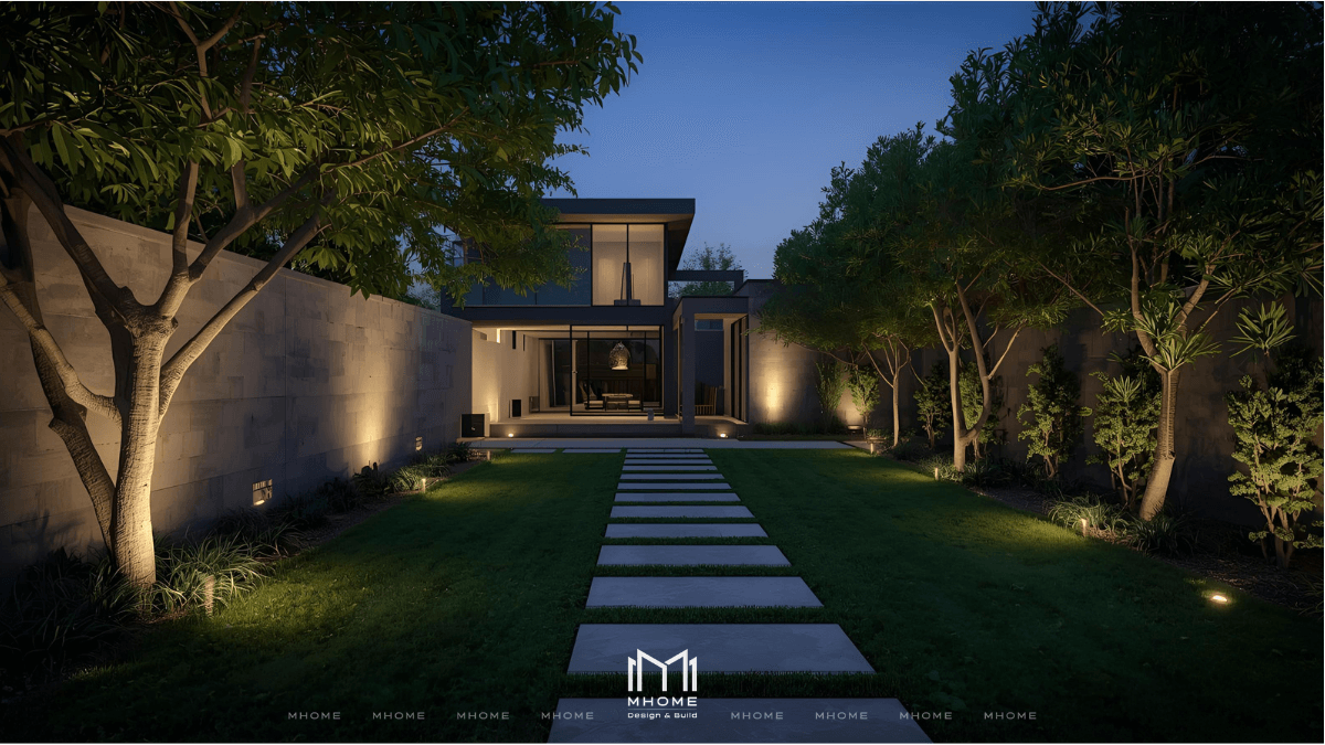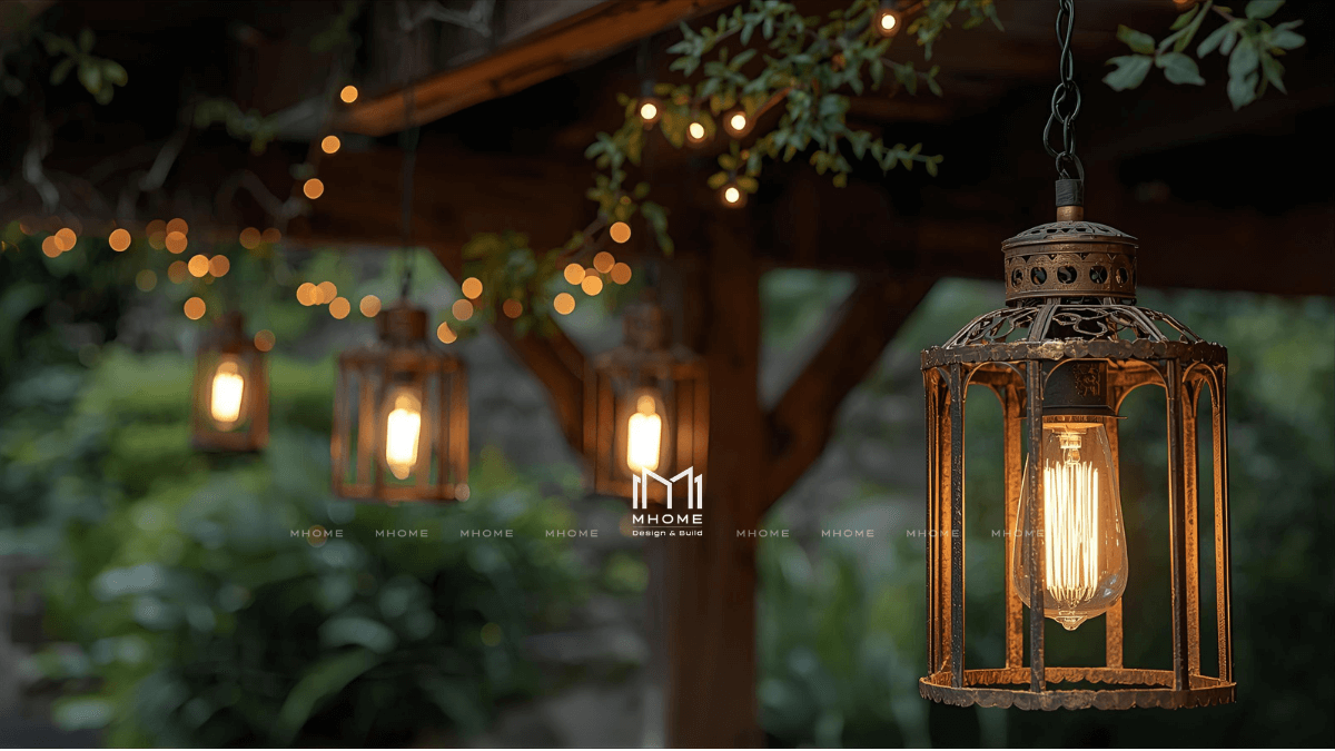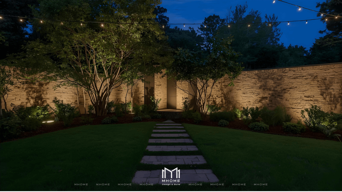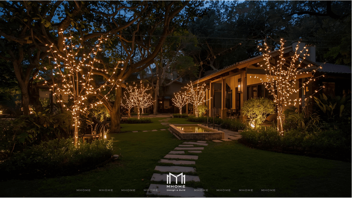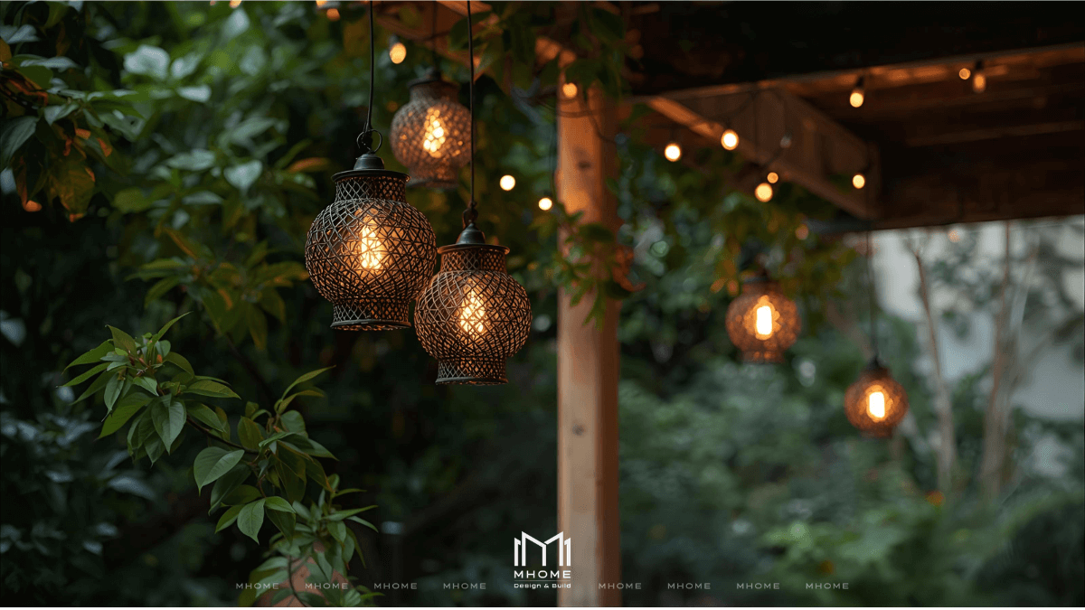 - Kết hợp nhiều loại đèn (âm đất, treo, dây LED) để tạo chiều sâu ánh sáng.